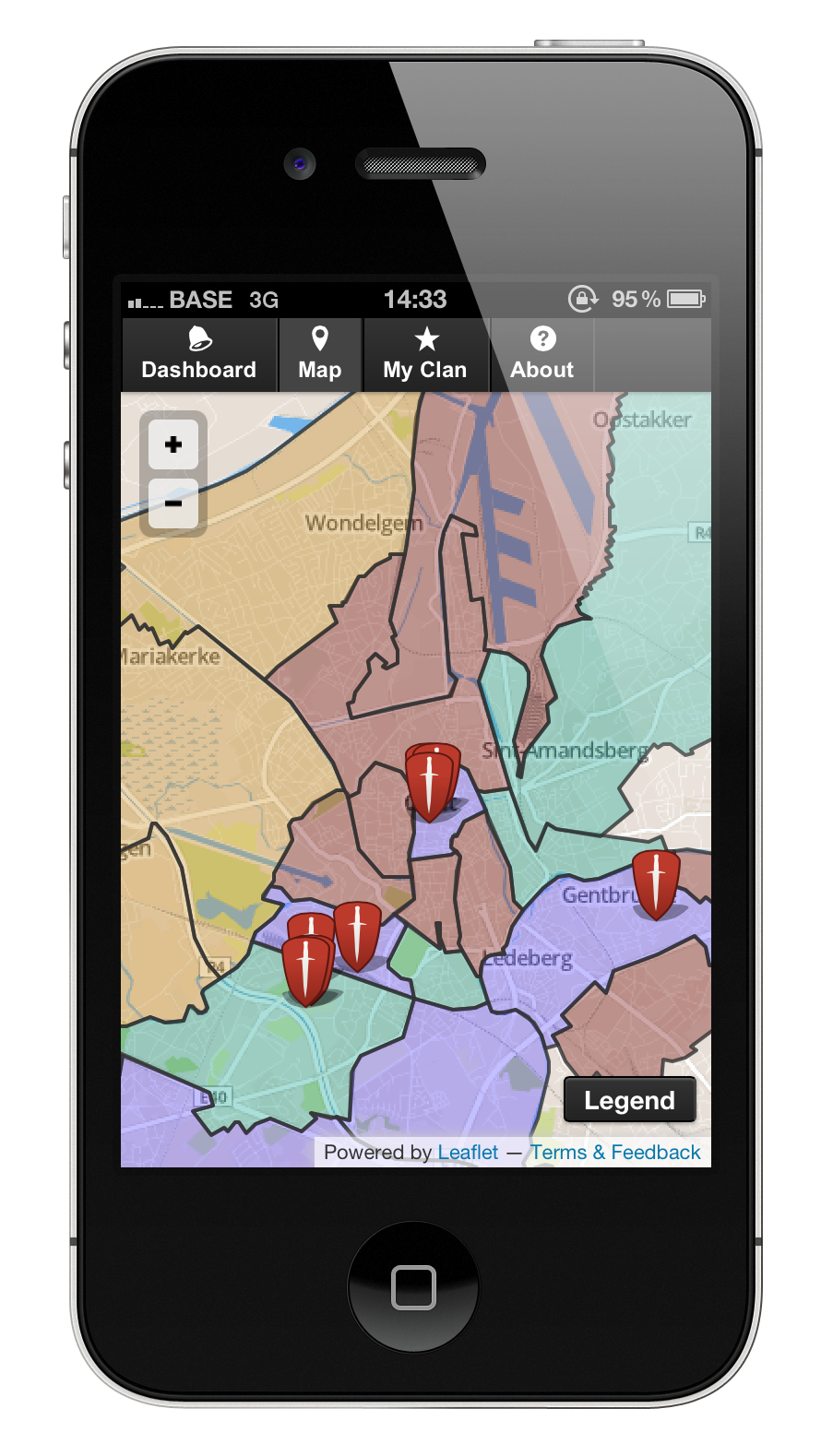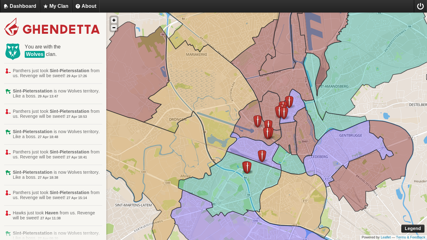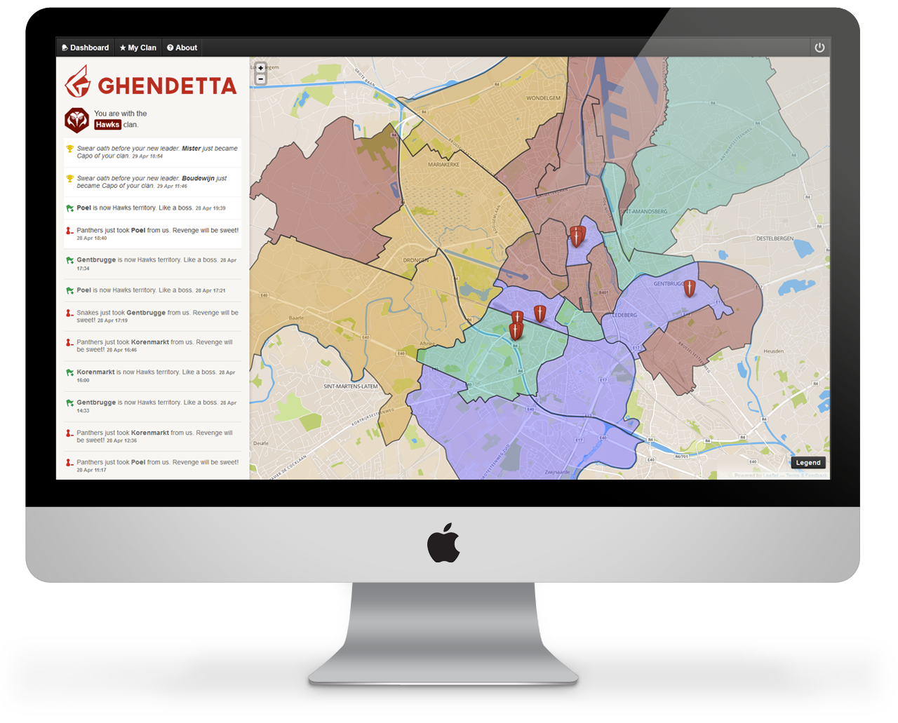 Surf to Ghendetta. Connect with Foursquare. Be loyal to the clan you start with: the Panthers, Snakes, Wolves or Hawks. Start checking in… And conquer Ghent! So if you are stopping by in Ghent, play along!